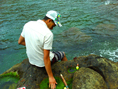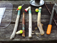 Tras dar los primeros pasos (realizar entrevistas, elegir los candidatos, firmar el contrato socio-educativo, hacer las compras y realizar las acciones preparatorias), los ocho jóvenes y dos educadores nos reunimos en la estación de tren de Irun para dirigirnos hacia el monte Jaizkibel, donde por las mañanas la tarea consistía en la limpieza de calas (tarea convenida con el concejal de medio ambiente del Ayto. de Hondarribia y en la que se recogieron más de 20 bolsas industriales de basura) y limpieza y desahogo de algún camino/sendero. Por las tardes se dedicaba a la pesca, baño, buceo, juegos, etc. La parte artística ha estado dirigida a la creación de utensilios para pescar.