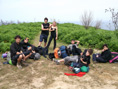 Oraingo honetan Jaizkibelera bueltatzen gara, gertuko lurraldea da hau baina taldeari bakardaderako aukera eskainiko diona. Muga-gaindiko “Lazos-Liens-Loturak” (P octefa -Feder ) proiektuaren eremuan, Gipuzkoako, Nafarroako, Arabako eta Pirinio Atlantikoko gazteei, haustura egonaldi honetan partehartzeko eskaintza zabaltzen zaie, eta azkenik 6 gaztek parte hartzen dute (12 elkarrizketa burutu ondoren). Lehenengo pausuak burutu ondoren (elkarrizketak, hautagaien aukeraketa egin, gizarte-heziketa kontratua sinatu, erosketak egin eta taldearekin prestaketa-ekintzak burutu), sei gazteak eta bi hezitzaileak Irungo tren geltokian bildu ginen, Jaizkibel mendirantz abiatzeko asmoz. Bertan, g oizetan burutu beharreko lana, kala edo itsasertzetako garbiketa izaten zen batetik (Hondarribiako udaleko ingurugiro zinegotziarekin itzartutakoaren arabera, eta non bertan 20 zabor-poltsa industrial baino gehiago jaso zirelarik) eta bestetik, bidezidorren bat garbitu eta arintzea. Arratsaldetan aldiz, arrantza, jolasak, bainua, eta urpean aritzeari etab. ekiten genion. Alor artistikoa, arrantza egiteko tresnei zuzenduta egon da. Azkenik, egonaldia amaitutzat eman genuen, itxiera-bilerak, batetik erreferentziazko profesionalekin eta gazte bakoitzarekin eta bestetik gazte talde osoarekin burutu eta gero. |